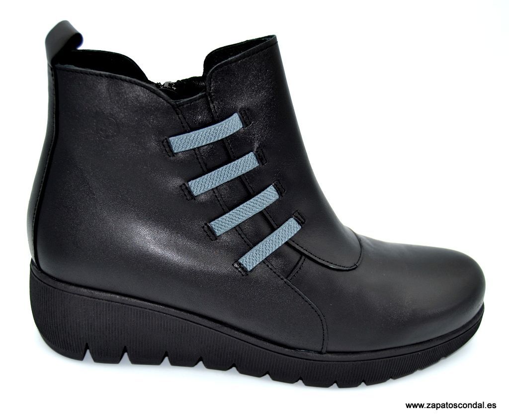 BOTÍN DE PIEL CON ELÁSTICOS. SUELA DE CAUCHO CON CUÑA.