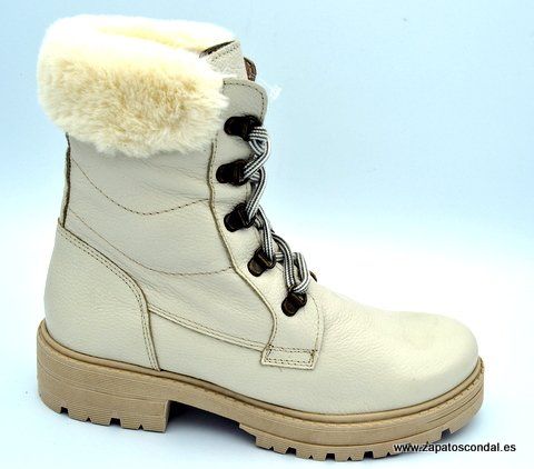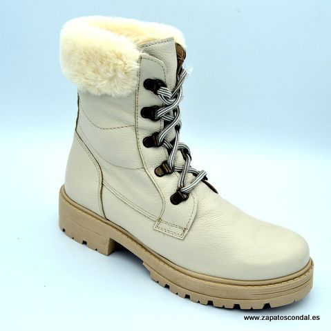 Yokono modelo Berna 001. Bota de piel color beige con cordones y ganchos. Suela de caucho de gran resistencia. Forro de pelo. Gran calidad y comodidad.