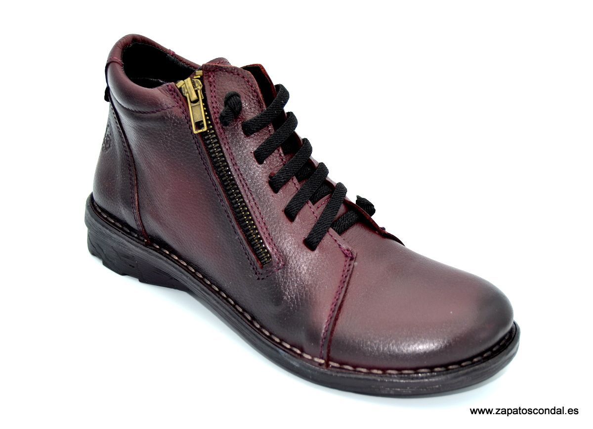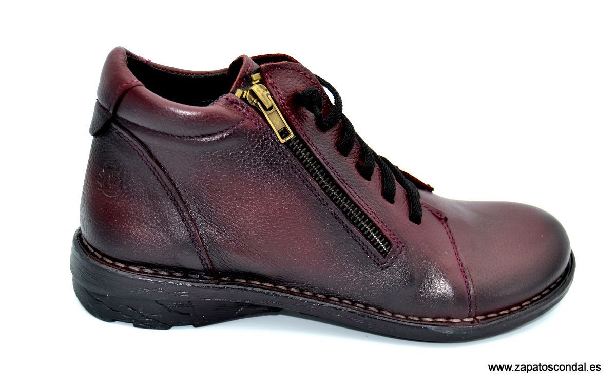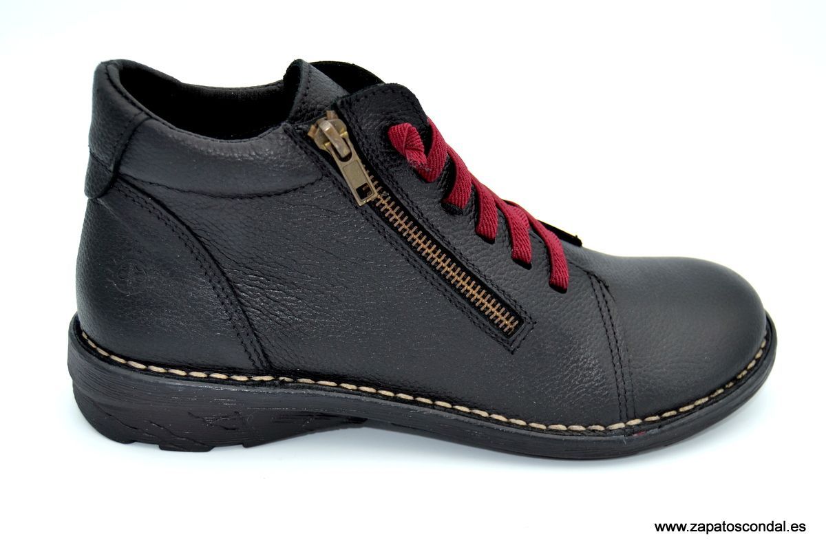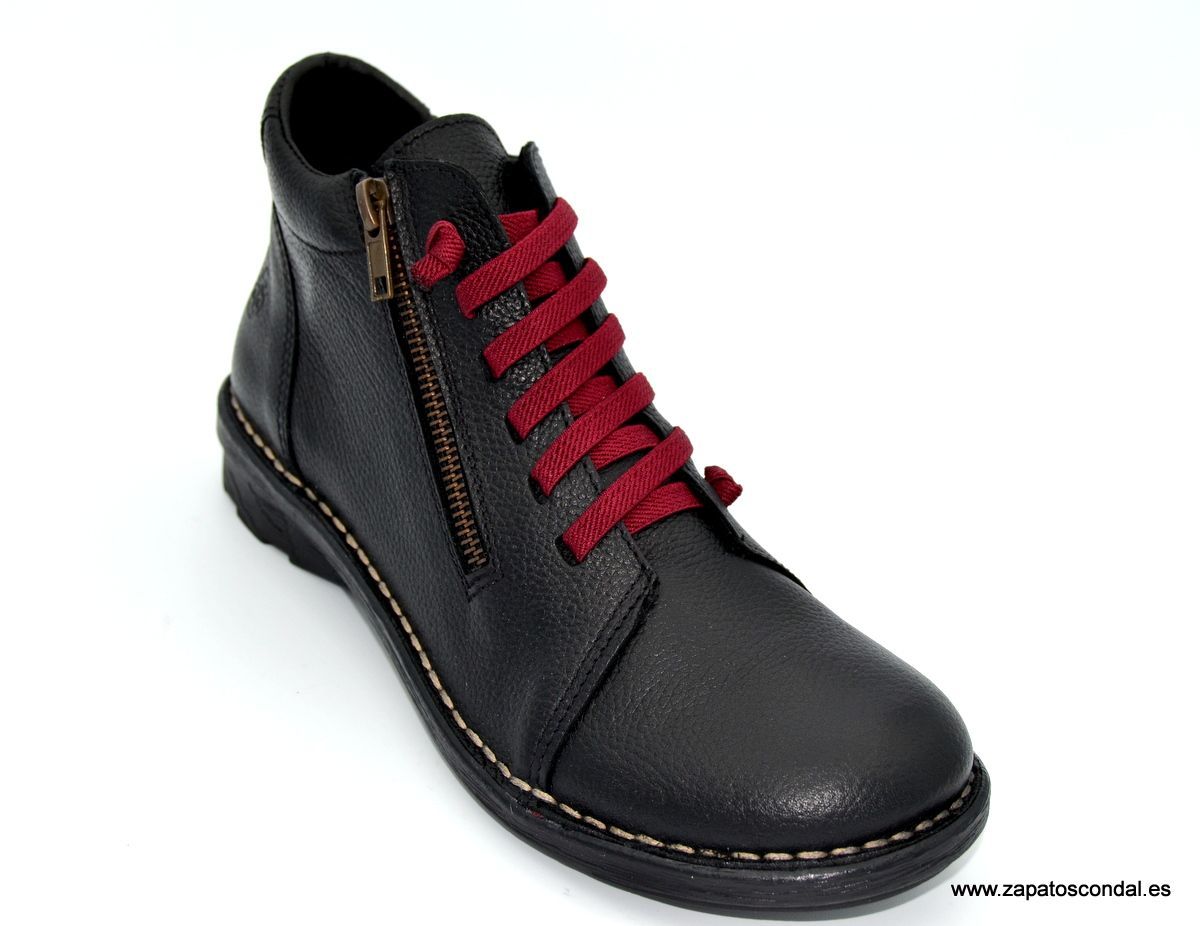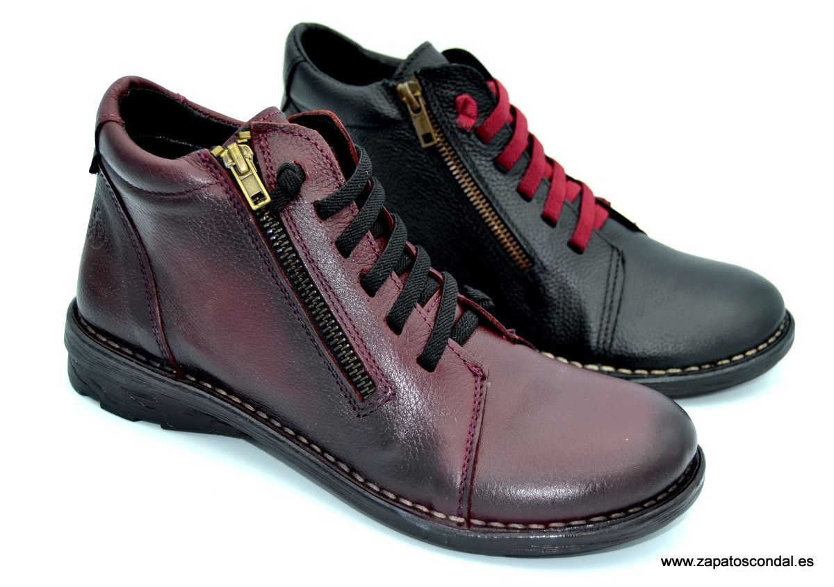 Yokono Colonia 010. Botín de mujer con cordones elásticos y cremallera lateral. Suela de caucho cosida. Calidad y comodidad fabricada en Elche-Alicante.