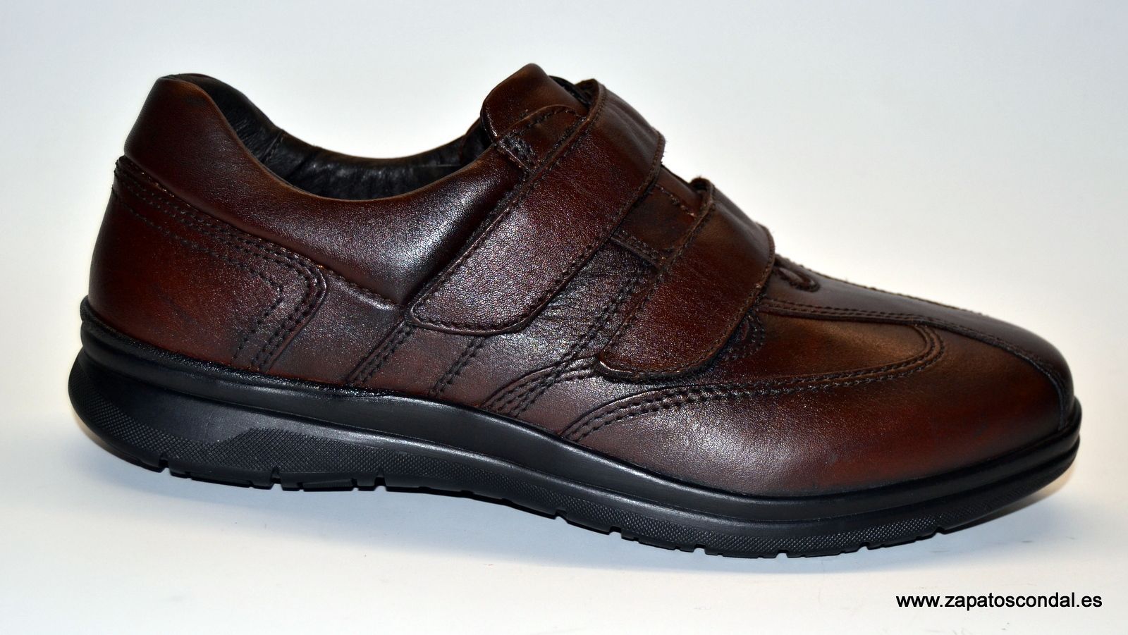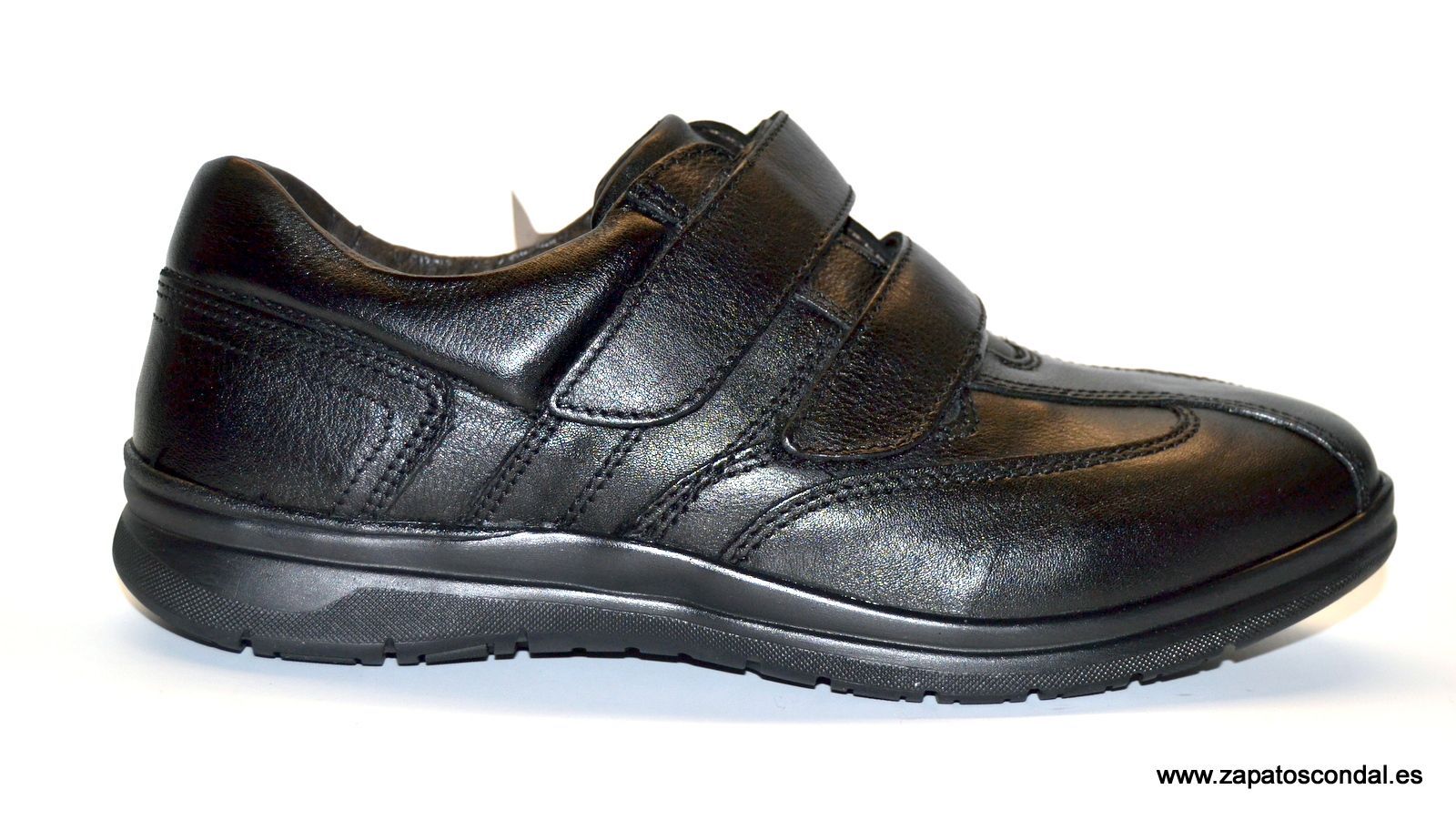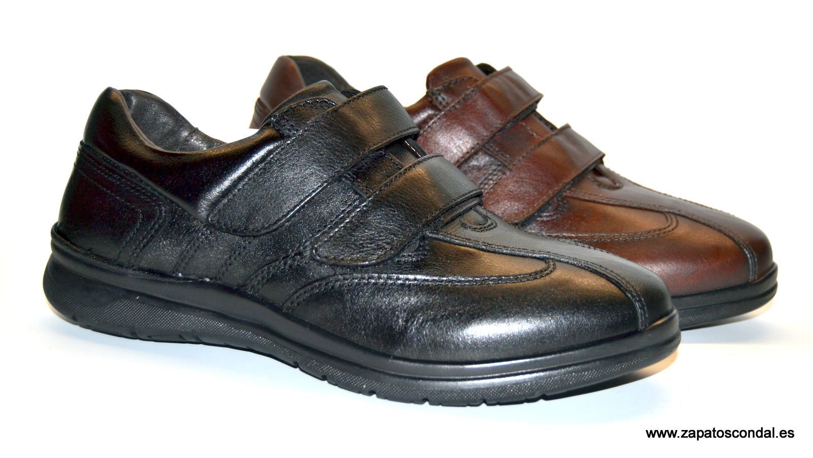Zen modelo 6984. Zapato deportivo de piel con cierre velcro. Horma ancha muy confortable. Disponibles en negro y marrón.
