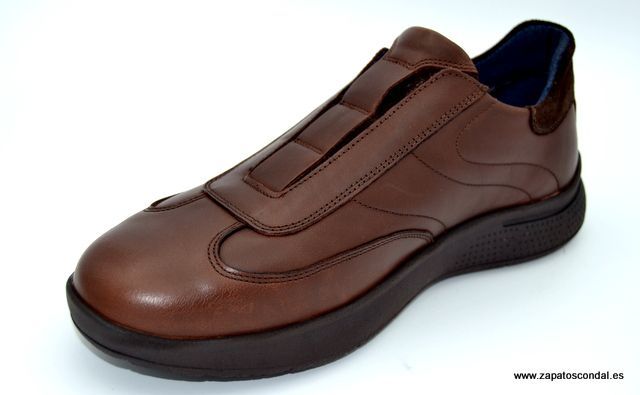 Zen modelo 779036. Zapato deportivo de piel sin cordones, con elástico en la pala. Forro aislante windtex. Suela de poliuretano burbujas especial confort. Plantilla anatómica de piel. Disponible en piel marrón. Muy cómodos.