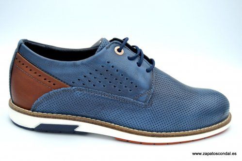 ZEN MODELO 78175. Zapato de piel , forro textil. Planta acolchada. Suela de caucho. Disponibles en azul y tabaco.